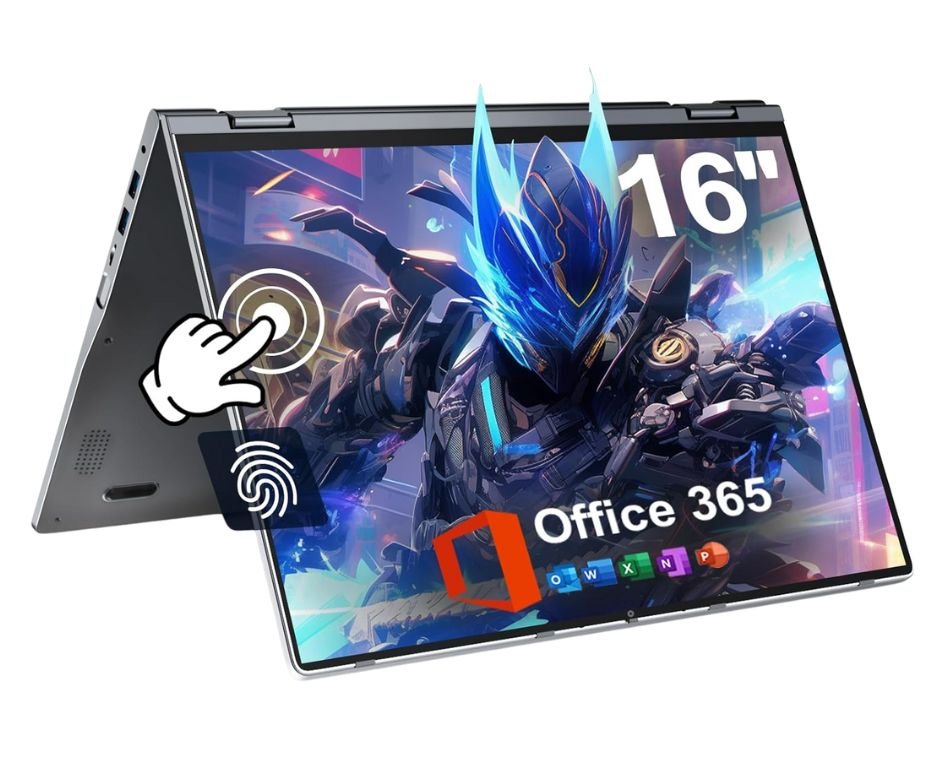 jumper 16 inch Convertible Laptop, 2 in 1 Laptop Computer with IPS FHD 360 Degree Touchscreen, 16GB DDR4 640GB Storage, Fingerprint Reader, WiFi 6, 53.2WH, Backlit Keyboard, Type-C, 1 Year Office 365